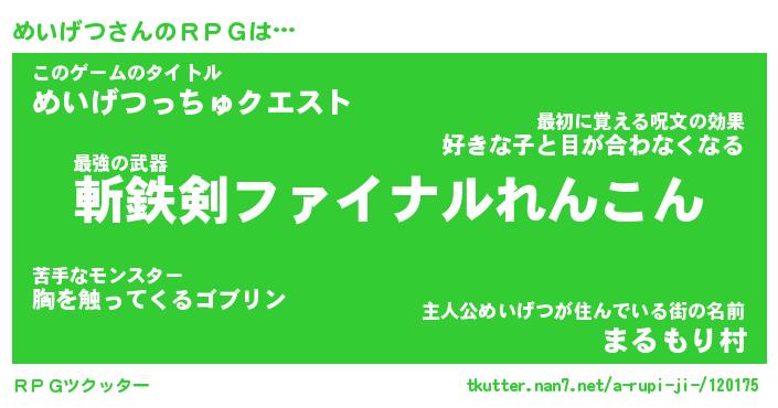 | 男性向けラノベタイトル風あだ名 | 『めいげつの憂鬱』 |