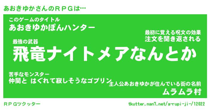 | 男性向けラノベタイトル風あだ名 | 『アオキユカアートオンライン』 |