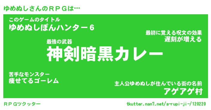 | 料理風あだ名 | 『節約★ゆめぬしと油揚げの玉子丼』 |