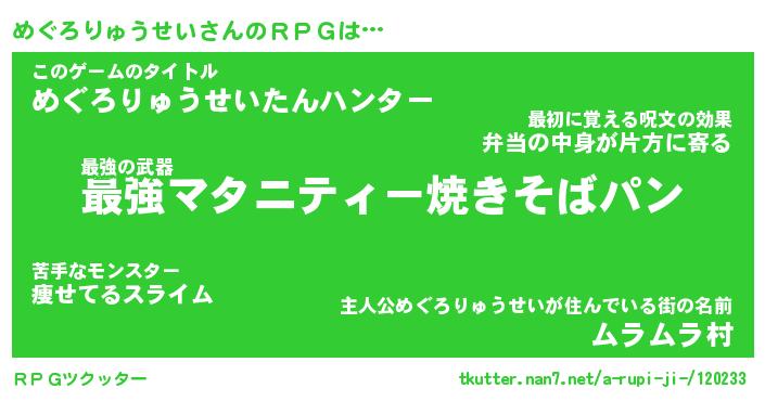 | 胡散臭い通販商品みたいなあだ名 | 『モテモテ間違いなし霊験あらたかなお札…その名も「めぐろりゅうせい」』 |