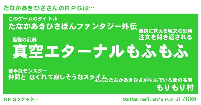 | 伝説のあだ名 | 『封印されし傭兵たなかあきひさ』 |