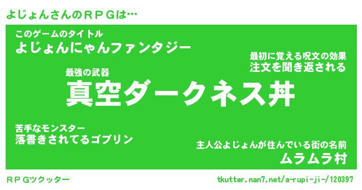 | 胡散臭い通販商品みたいなあだ名 | 『億万長者になれる水晶球…その名も「よじょん」』 |