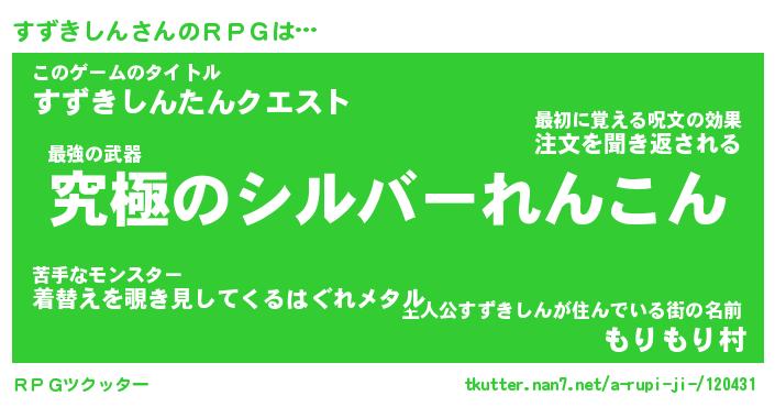 | ヒーロー風カッコイイあだ名 | 『スーパースズキシン』『幻影騎士スズ』 |