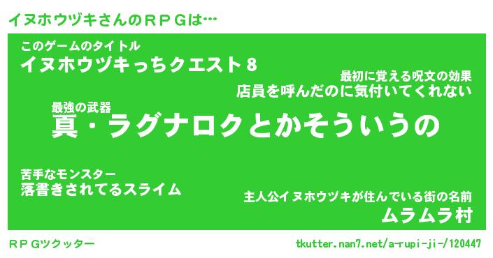 | 男性向けラノベタイトル風あだ名 | 『イヌホウヅキアートオンライン』 |