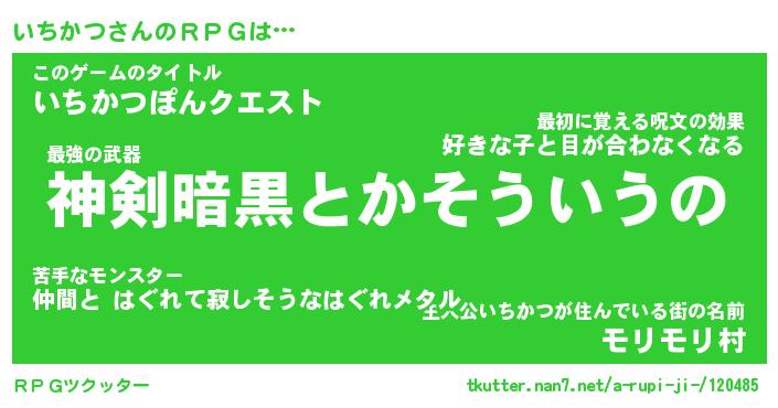 | 男性向けラノベタイトル風あだ名 | 『いちかつの憂鬱』 |
