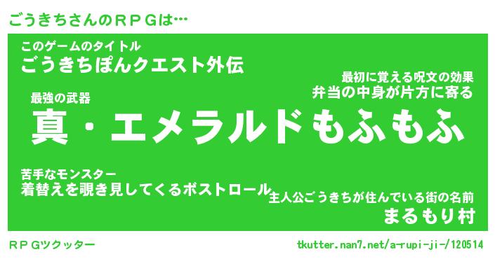 | ファンタジー風あだ名 | 『ゴウフェル』『エターナルゴウキチー』 |