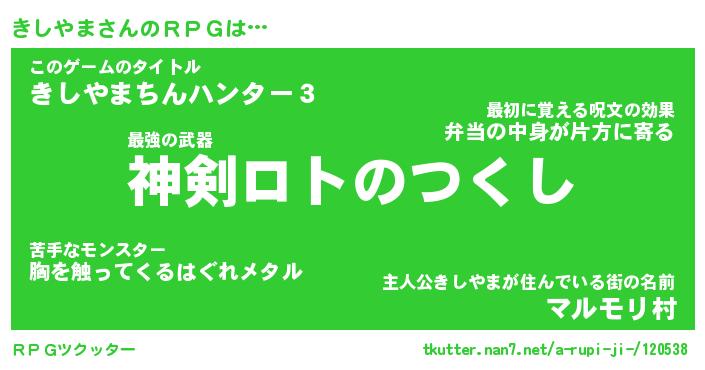 | 男性向けラノベタイトル風あだ名 | 『きしやまの憂鬱』 |