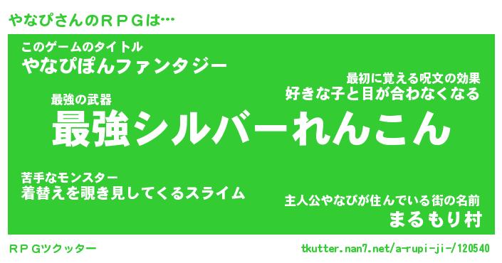 | ファンタジー風あだ名 | 『ヤナフェル』『エターナルヤナピー』 |