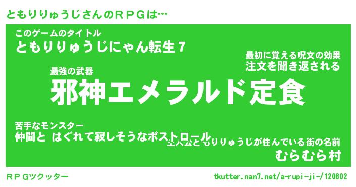 | 男性向けラノベタイトル風あだ名 | 『トモリリュウジアートオンライン』 |
