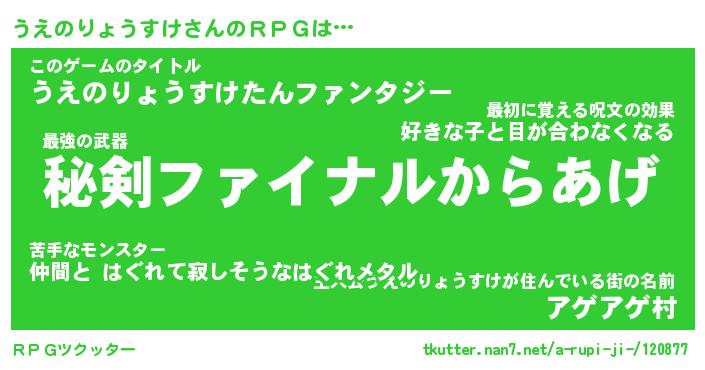 | 意味不明あだ名 | 『ペロリンうえのりょうすけ』 |