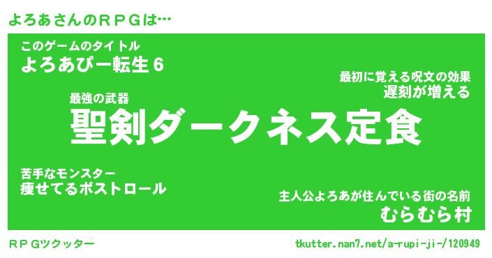 | 伝説のあだ名 | 『伝説の傭兵よろあ』『孤高の僧侶よろあ』 |