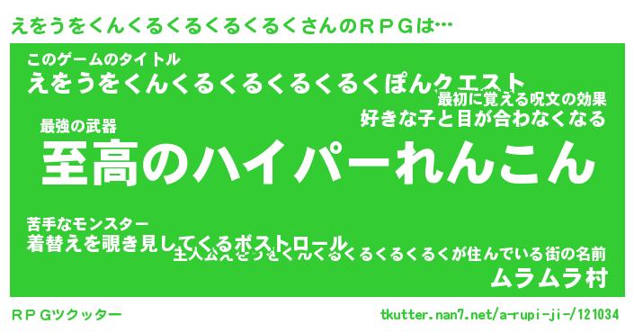 | 男性向けラノベタイトル風あだ名 | 『エヲウヲクンクルクルクルクルクアートオンライン』 |