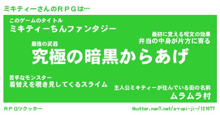 | ヘコむあだ名 | 『ミキにゅー』『つくし』 |