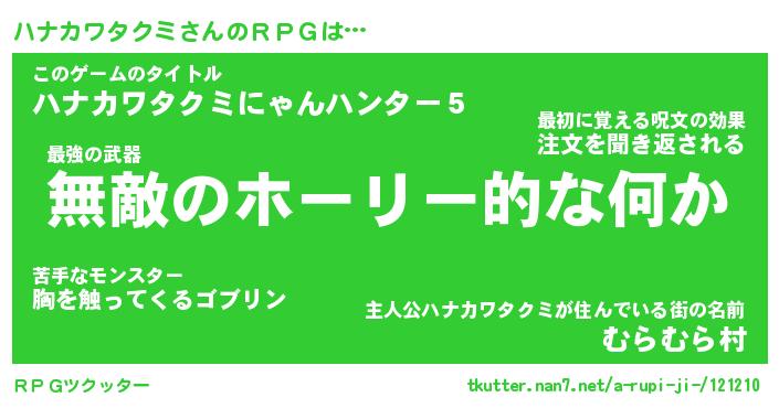 | 胡散臭い通販商品みたいなあだ名 | 『億万長者になれる水晶球…その名も「ハナカワタクミ」』 |