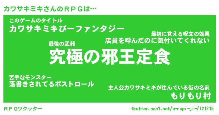 | 料理風あだ名 | 『節約★カワサキミキと油揚げの玉子丼』 |