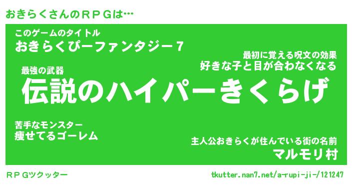 | 胡散臭い通販商品みたいなあだ名 | 『モテモテ間違いなしブレスレット…その名も「おきらく」』 |