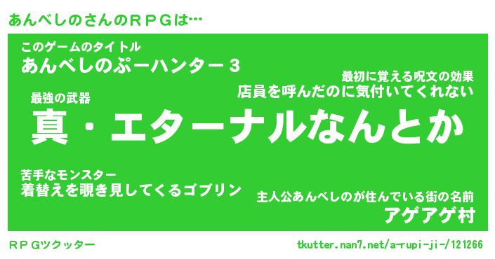 | 伝説のあだ名 | 『封印されし傭兵あんべしの』 |