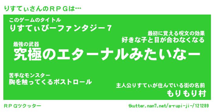 | ファンタジー風あだ名 | 『リスフェル』『エターナルリスティー』 |