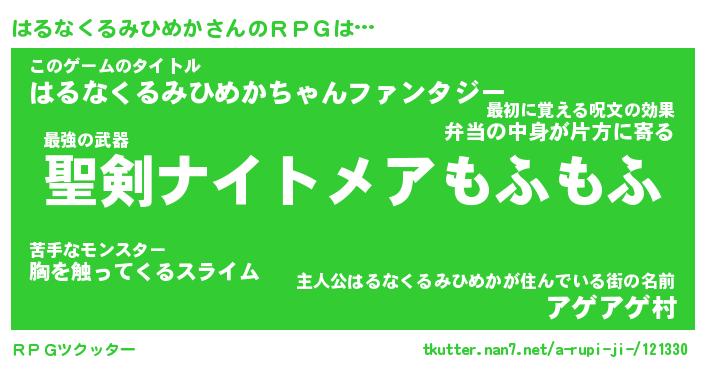 | 意味不明あだ名 | 『ペロリンはるなくるみひめか』 |