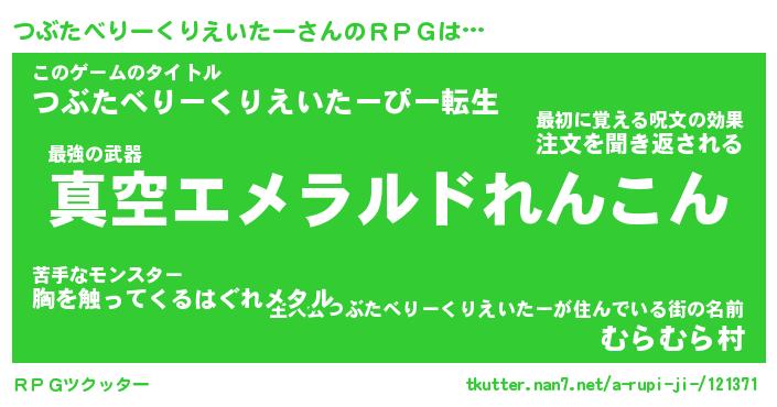 | 男性向けラノベタイトル風あだ名 | 『ツブタベリークリエイターアートオンライン』 |