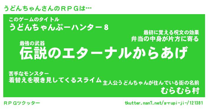 | 料理風あだ名 | 『節約★うどんちゃんと油揚げの玉子丼』 |