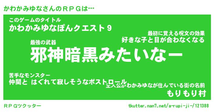 | 伝説のあだ名 | 『封印されし傭兵かわかみゆな』 |