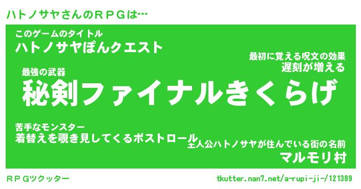 | ファンタジー風あだ名 | 『ハトフェル』『エターナルハトノサヤー』 |