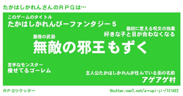 | 男性向けラノベタイトル風あだ名 | 『タカハシカレンアートオンライン』 |