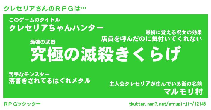 | ヒーロー風カッコイイあだ名 | 『スーパークレセリア』『暗黒騎士クレ』 |