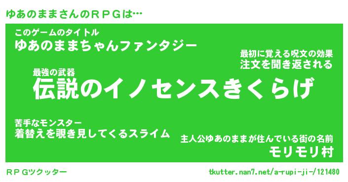 | 胡散臭い通販商品みたいなあだ名 | 『モテモテ間違いなし霊験あらたかなお札…その名も「ゆあのまま」』 |