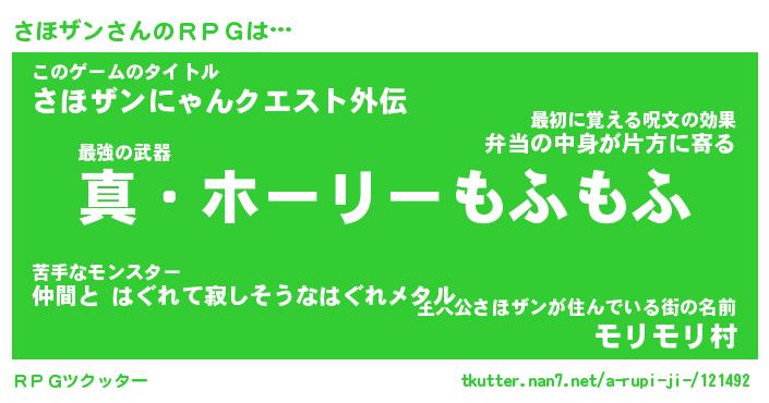| ファンタジー風あだ名 | 『サホフェル』『エターナルサホザンー』 |