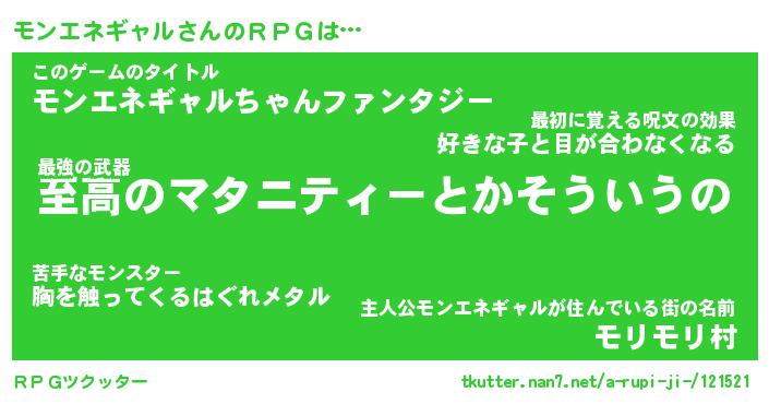 | 男性向けラノベタイトル風あだ名 | 『モンエネギャルアートオンライン』 |