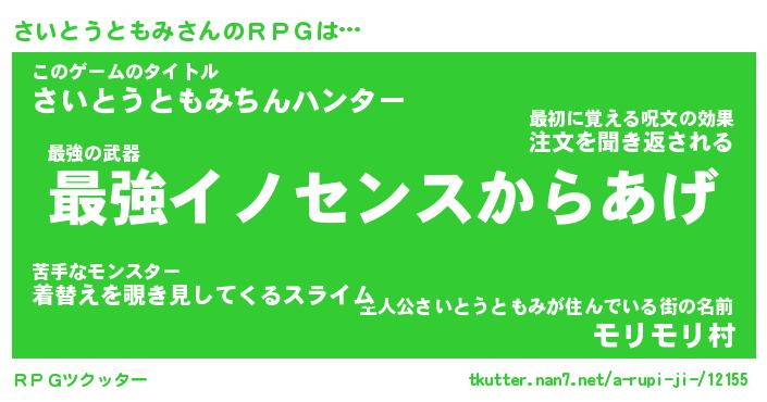 | 肩書あだ名 | 『さいとうともみ御曹司』 |