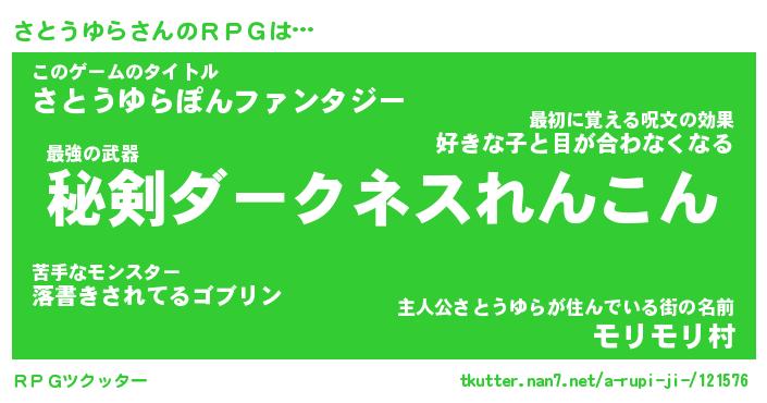 | 胡散臭い通販商品みたいなあだ名 | 『モテモテ間違いなし水晶球…その名も「さとうゆら」』 |