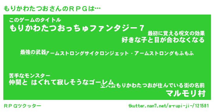 | 伝説のあだ名 | 『不死鳥の竜騎士もりかわたつお』 |