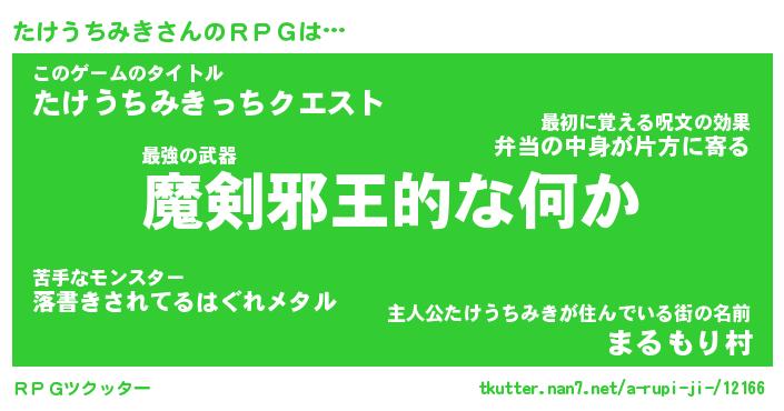 | ヘコむあだ名 | 『たけにゅー』『酢こんぶ』『たけを』 |