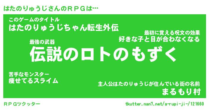 | 男性向けラノベタイトル風あだ名 | 『はたのりゅうじの憂鬱』 |