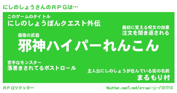 | 男性向けラノベタイトル風あだ名 | 『ニシノショウアートオンライン』 |