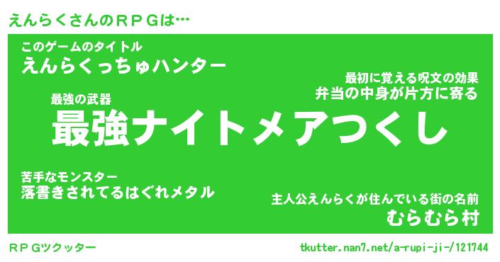 | 男性向けラノベタイトル風あだ名 | 『エンラクアートオンライン』 |