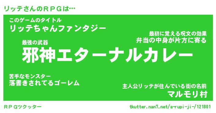 | 胡散臭い通販商品みたいなあだ名 | 『億万長者になれる水晶球…その名も「リッテ」』 |