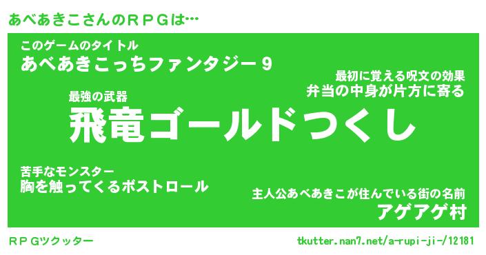 | 男性向けラノベタイトル風あだ名 | 『アベアキコアートオンライン』 |