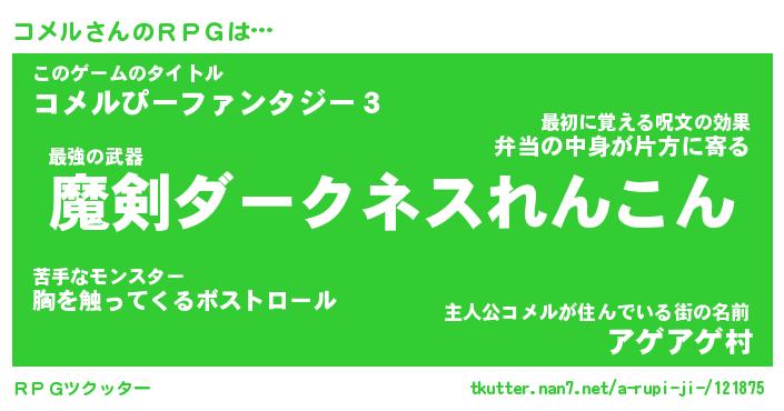 | 男性向けラノベタイトル風あだ名 | 『コメルの憂鬱』 |