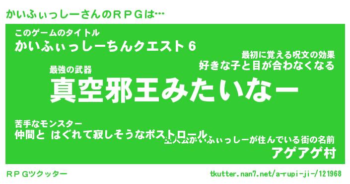 | 男性向けラノベタイトル風あだ名 | 『カイフィッシーアートオンライン』 |