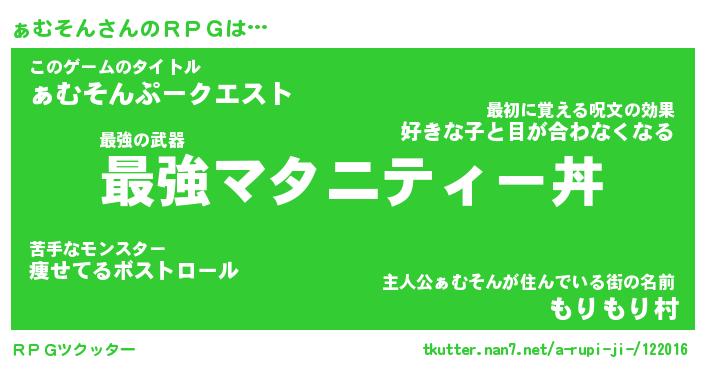 | 料理風あだ名 | 『節約★ぁむそんと油揚げの玉子丼』 |