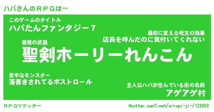| 胡散臭い通販商品みたいなあだ名 | 『必ず成功する水晶球…その名も「ハバ」』 |