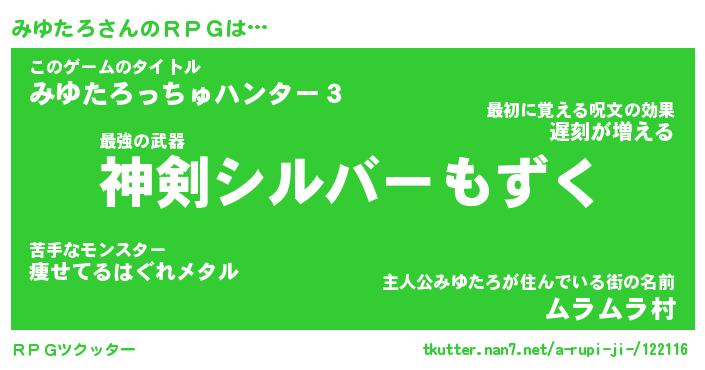 | ファンタジー風あだ名 | 『ミユフェル』『エターナルミユタロー』 |