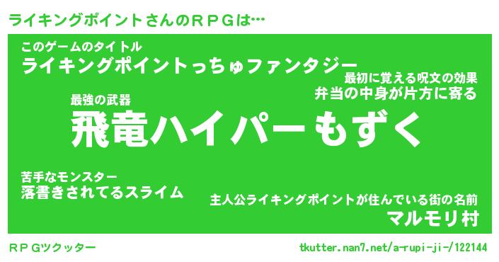 | ツイッター | ライキングポイントさんのツイッターID『fukuyoka_man』 |