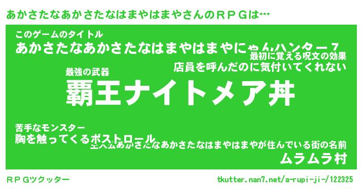 | ツイッター | あかさたなあかさたなはまやはまやさんのツイッターID『namakemono_nyan』 |