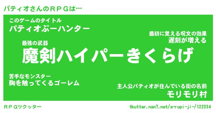 | ファンタジー風あだ名 | 『パテフェル』『エターナルパティオー』 |