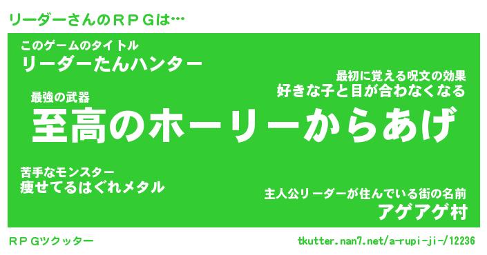 | 男性向けラノベタイトル風あだ名 | 『リーダーアートオンライン』 |